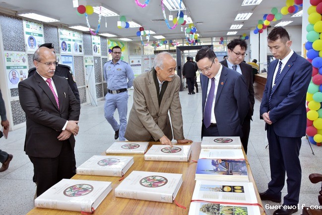 3月13日,中国驻巴基斯坦拉合尔总领事馆赵世人总领事一行走访我校巴基斯坦费萨拉巴德农业大学孔子学院(以下简称“费萨孔院”),巴方大学校长兼费萨孔院巴方理事长伊克拉·艾哈迈德·汉教授(Prof. Iqrar Ahmad Khan),孔院巴方院长扎希尔·艾哈迈德·扎希尔教授(Prof. Dr. Zahir Ahmad Zahir),巴方大学各学院院长、行政主管、曾在华留学的巴方教师、在巴方大学读书的中国留学生以及孔院师生等80多人参加活动。